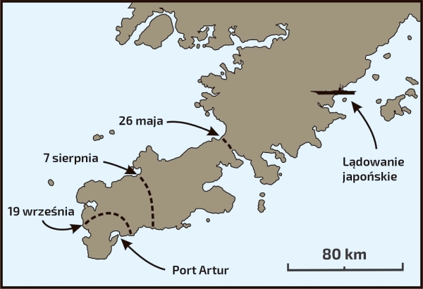 2 Armia pod dowództwem generała Yasukaty Oku wylądowała na półwyspie Liaodong, zajmując pozycję pomiędzy Port Artur a rosyjskimi oddziałami generała Aleksieja Nikołajewicza Kuropatkina na północy. Połączenie miasta-twierdzy z Mandżurią i Rosją zostało przerwane. Oku przypieczętował to osiągnięcie 15 czerwca, odpierając rosyjską próbę przełamania blokady. Od tamtej chwili dla obrońców Port Artur sprawa była całkowicie jasna: byli zdani na siebie.